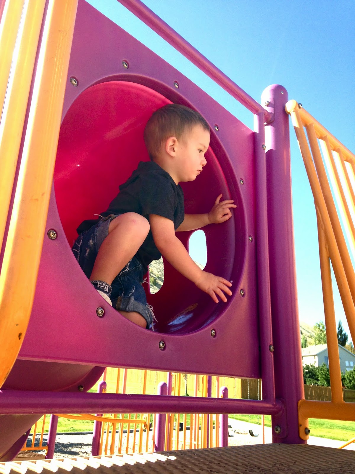 The big yellow slide was of course a favorite. Tracker was not excited or happy as we walked up the slide and the entire way down he had a rather concerned face but once it was over he wanted to go again. So we did. Several times.
